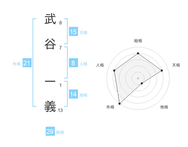 武谷 ー義さんを姓名の画数から五運を鑑定