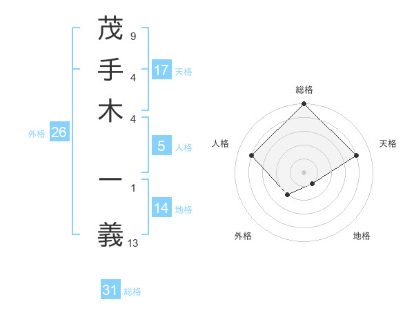 茂手木 ー義さんを姓名の画数から五運を鑑定