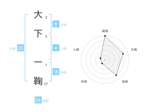 大下 ー鞠さんの総格は24画の5点!