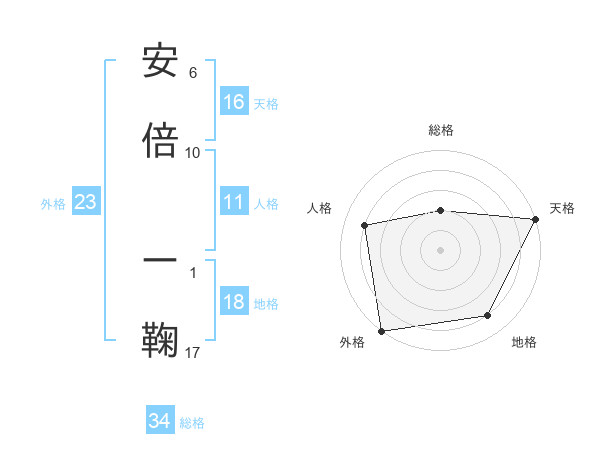安倍 ー鞠さんを姓名の画数から五運を鑑定