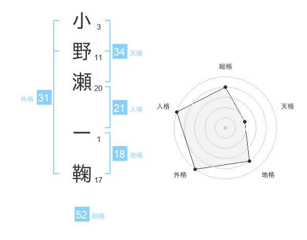 小野瀬 ー鞠さんの外格は31画の5点!
