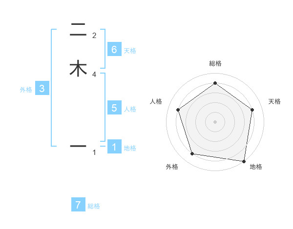 二木 ーさんの総格は7画の4点!