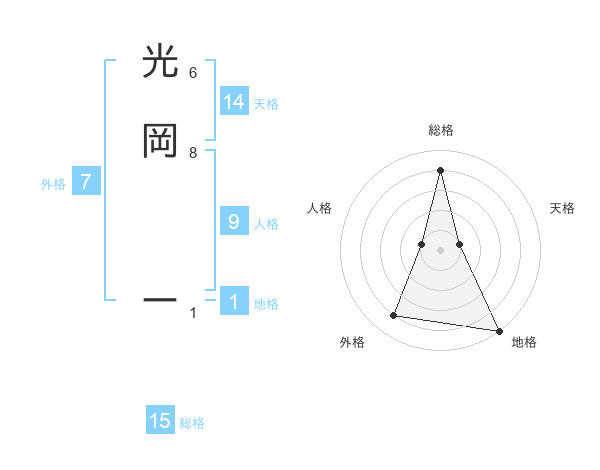 光岡 ーさんの地格は1画の5点!