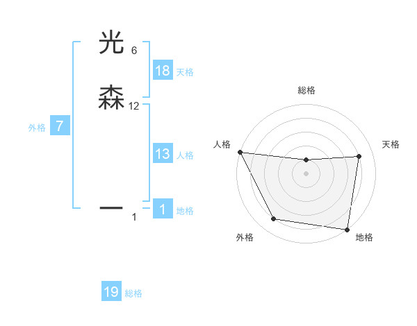 光森 ーさんの総格は19画の1点!