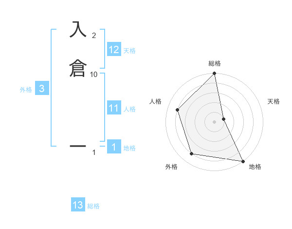 入倉 ーさんの総格は13画の5点!