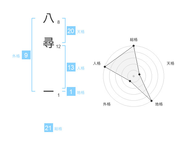 八尋 ーさんの総格は21画の5点!