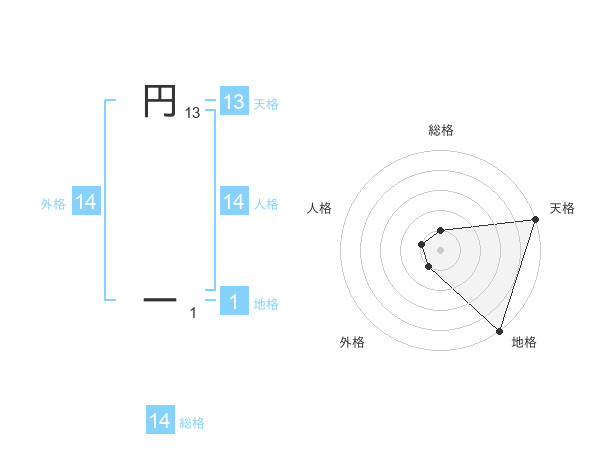 円 ーさんの総格は14画の1点!