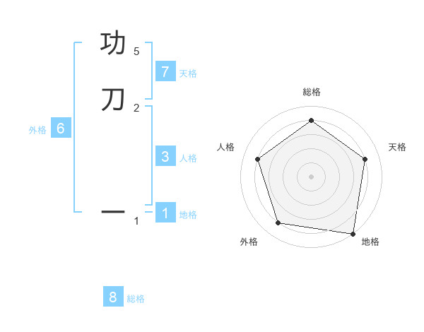 功刀 ーさんの地格は1画の5点!