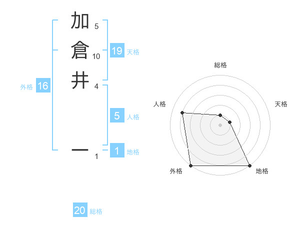 加倉井 ーさんの総格は20画の1点!