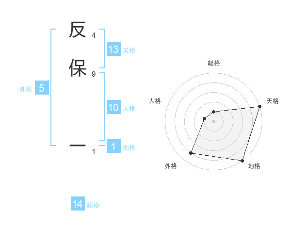 反保 ーさんの総格は14画の1点!