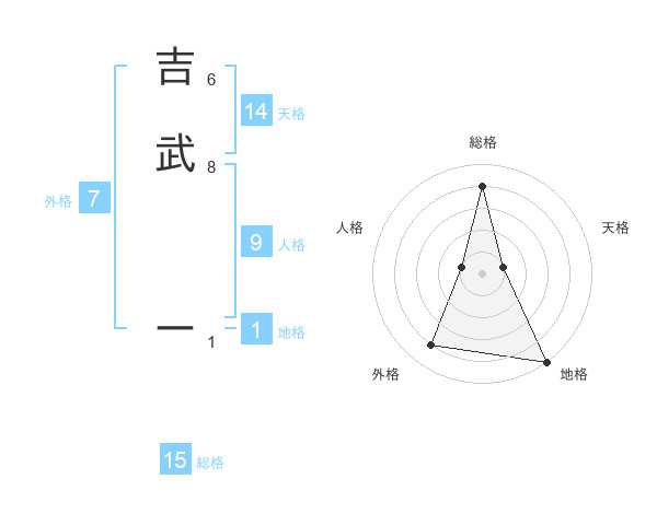 吉武 ーさんの総格は15画の4点!