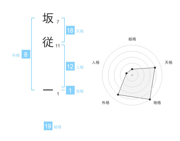 坂従 ーさんの地格は1画の5点!