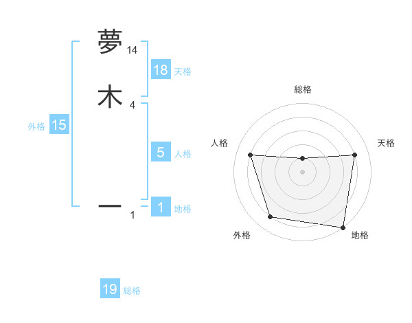 夢木 ーさんの総格は19画の1点!
