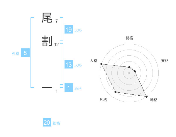 尾割 ーさんの総格は20画の1点!