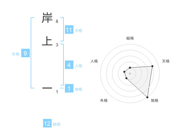 岸上 ーさんの総格は12画の1点!