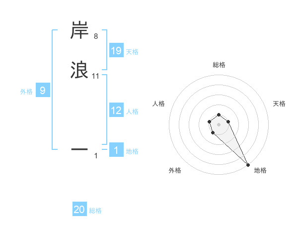 岸浪 ーさんの総格は20画の1点!
