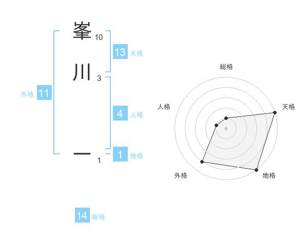 峯川 ーさんの総格は14画の1点!