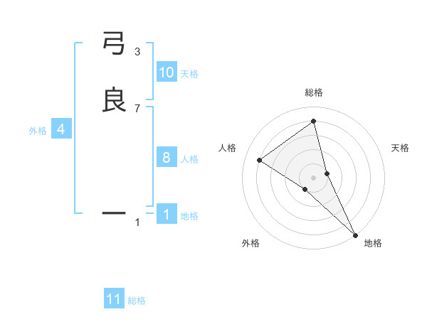 弓良 ーさんの総格は11画の4点!