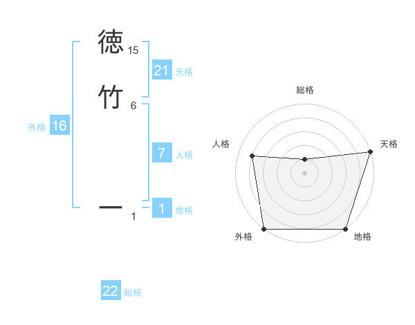 徳竹 ーさんの総格は22画の1点!