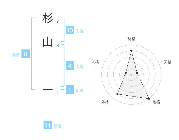 杉山 ーさんの総格は11画の4点!