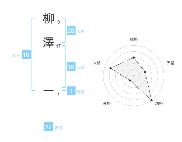 柳澤 ーさんを姓名の画数から五運を鑑定