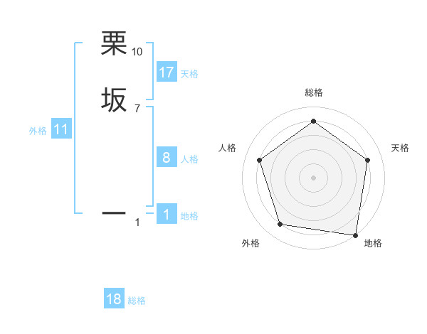 栗坂 ーさんの地格は1画の5点!