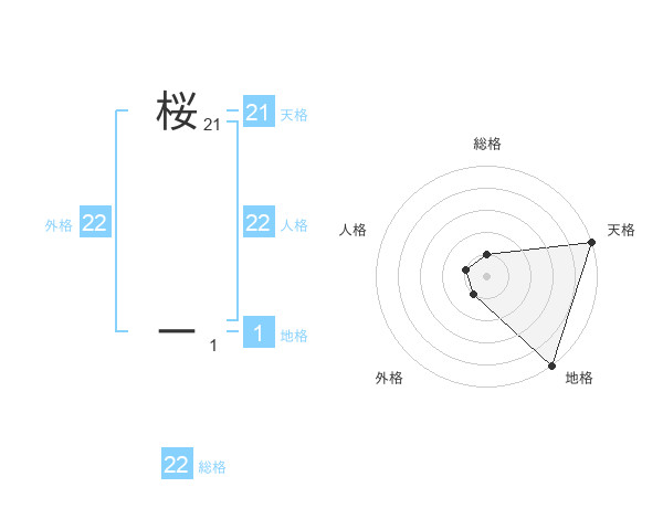 桜 ーさんの総格は22画の1点!