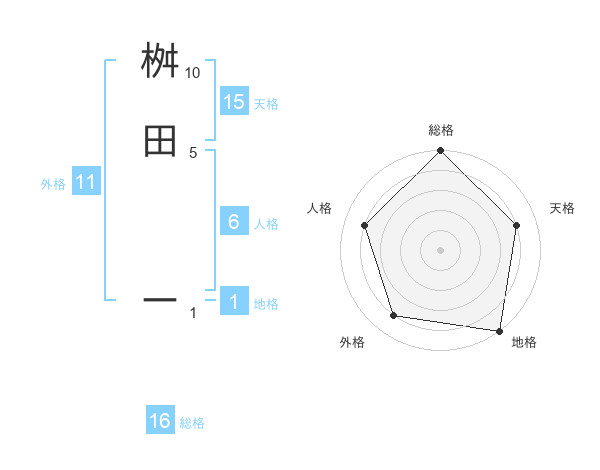 桝田 ーさんの総格は16画の5点!