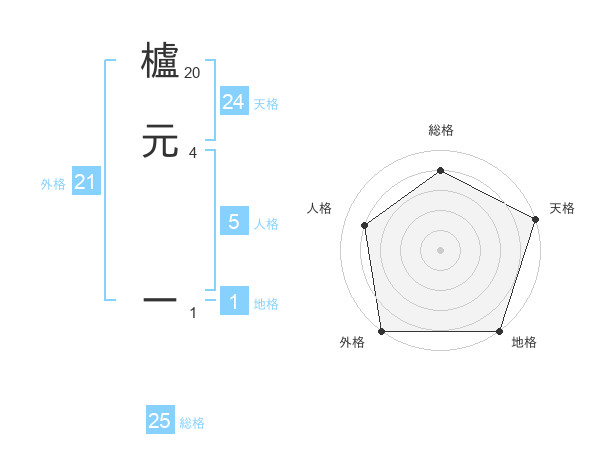 櫨元 ーさんの天格は24画の5点!