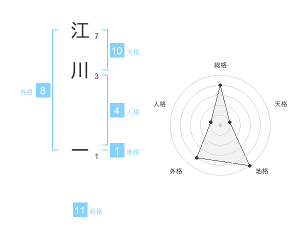 江川 ーさんの総格は11画の4点!