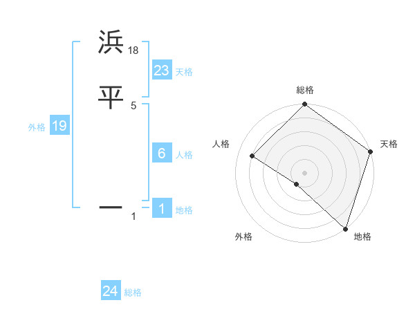 浜平 ーさんの総格は24画の5点!