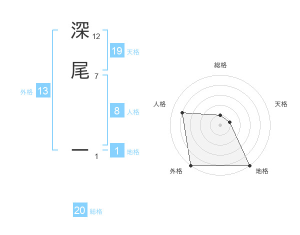 深尾 ーさんの総格は20画の1点!