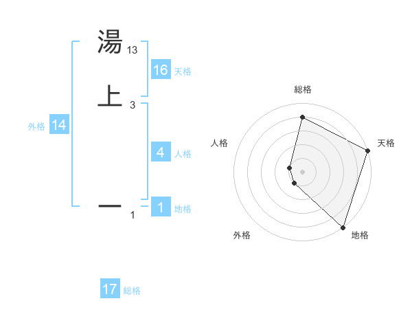 湯上 ーさんの総格は17画の4点!