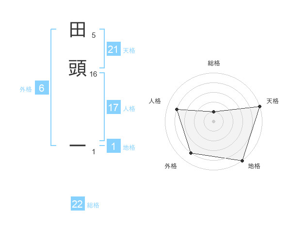 田頭 ーさんの総格は22画の1点!