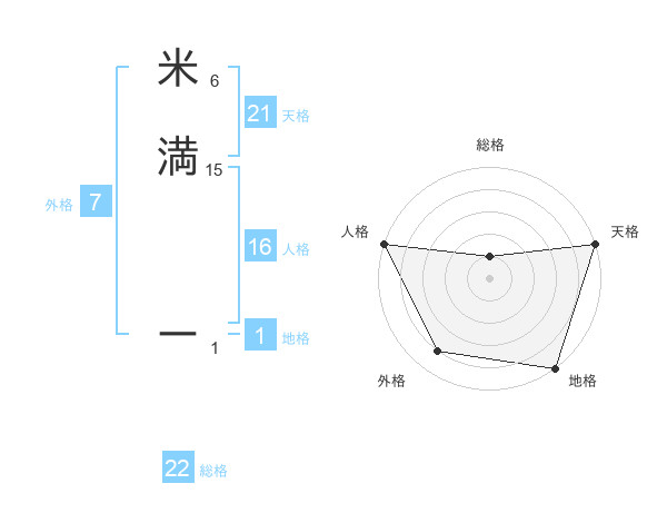 米満 ーさんの総格は22画の1点!