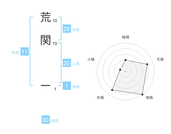 荒関 ーさんの総格は30画の2点!