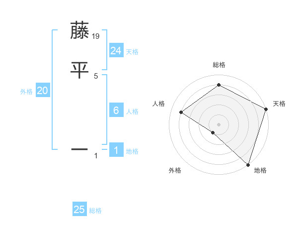 藤平 ーさんの天格は24画の5点!