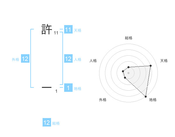 許 ーさんの総格は12画の1点!