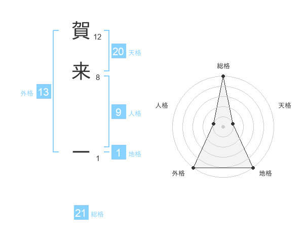 賀来 ーさんの総格は21画の5点!