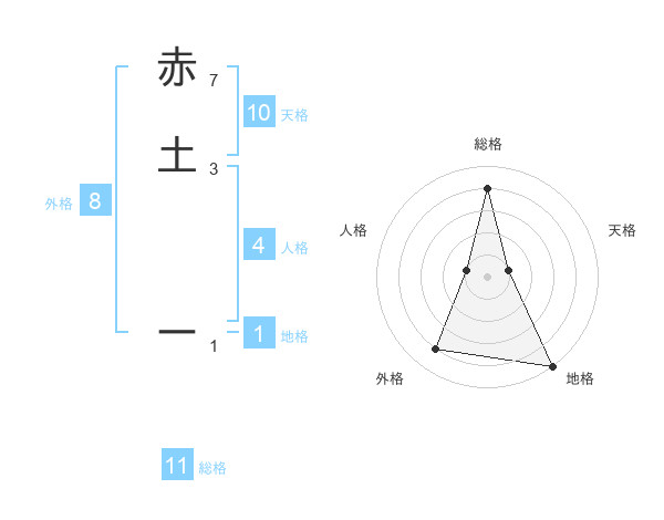 赤土 ーさんの総格は11画の4点!