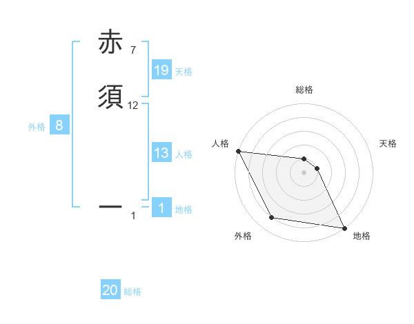 赤須 ーさんの総格は20画の1点!