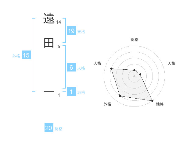 遠田 ーさんの総格は20画の1点!