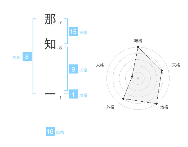 那知 ーさんの地格は1画の5点!