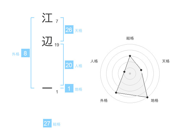 江辺 ーさんの総格は27画の3点!