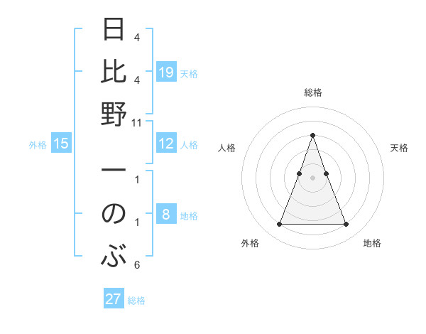 日比野 一のぶさんの総格は27画の3点!