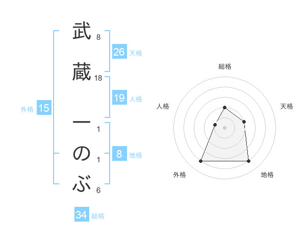 武蔵 一のぶさんを姓名の画数から五運を鑑定