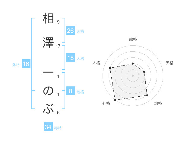相澤 一のぶさんを姓名の画数から五運を鑑定