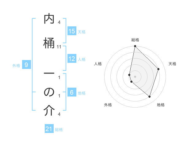 内桶 一の介さんの総格は21画の5点!