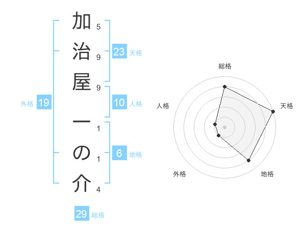 加治屋 一の介さんを姓名の画数から五運を鑑定