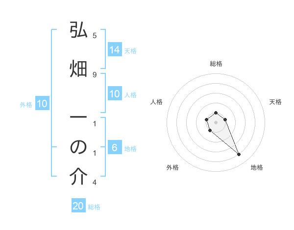 弘畑 一の介さんの総格は20画の1点!